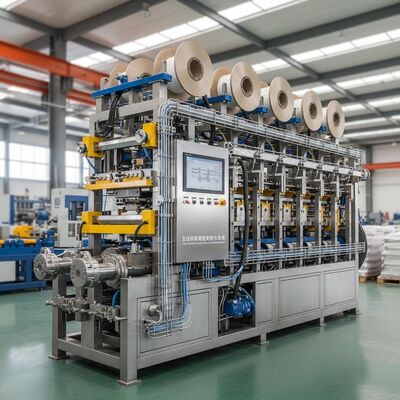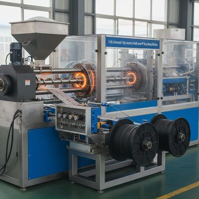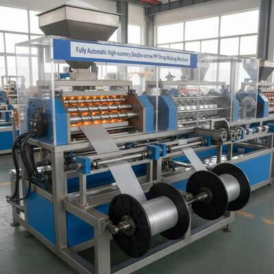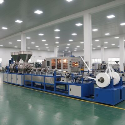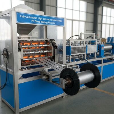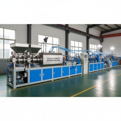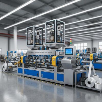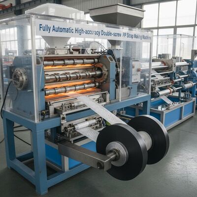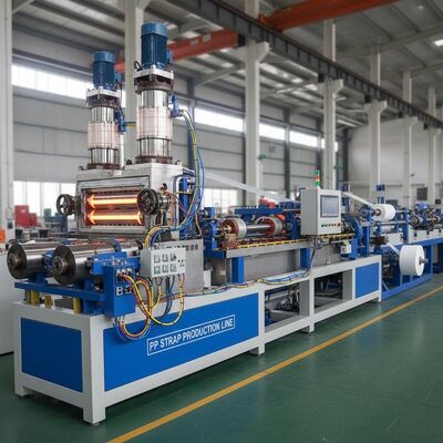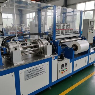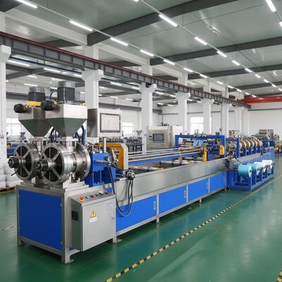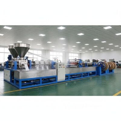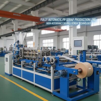 Línea de extrusión de doble tornillo de alto rendimiento diseñada para fabricar 4 tiras de correa de PP con precisión y eficiencia.Este sistema de producción automatizado garantiza una producción de calidad constante para las plantas de fabricación.
